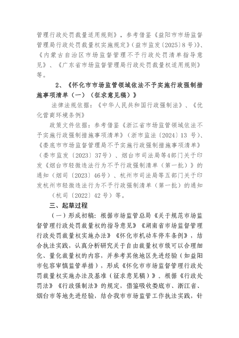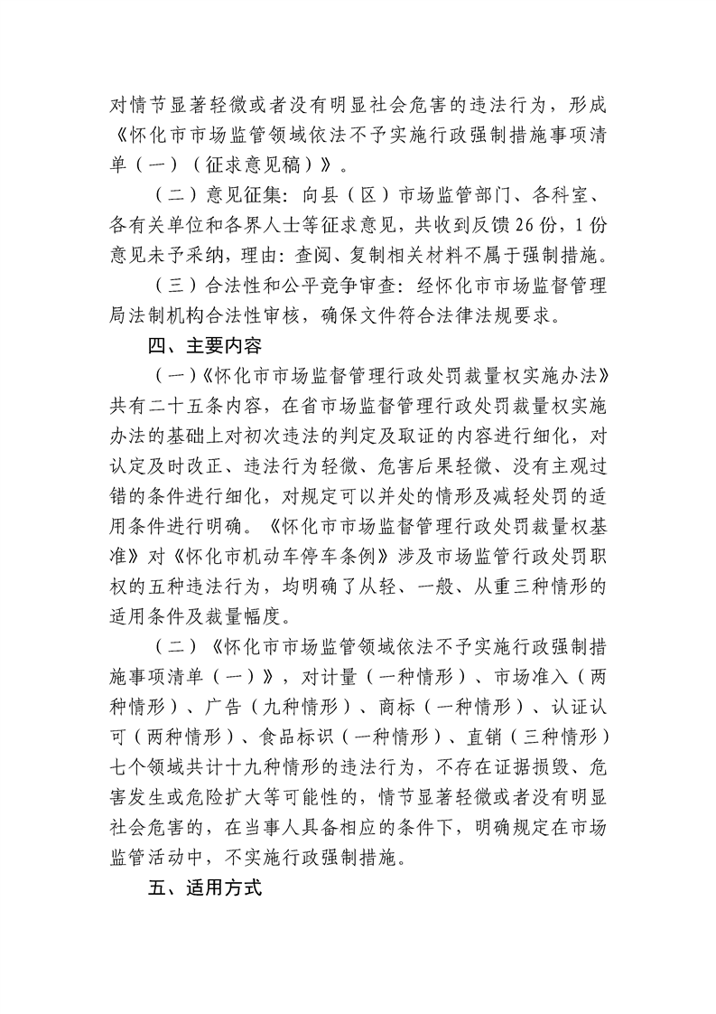 关于印发《怀化市市场监督管理行政处罚裁量权实施办法及基准》《怀化市市场监管领域依法不予实施行政强制措施事项清单(一)》的通知