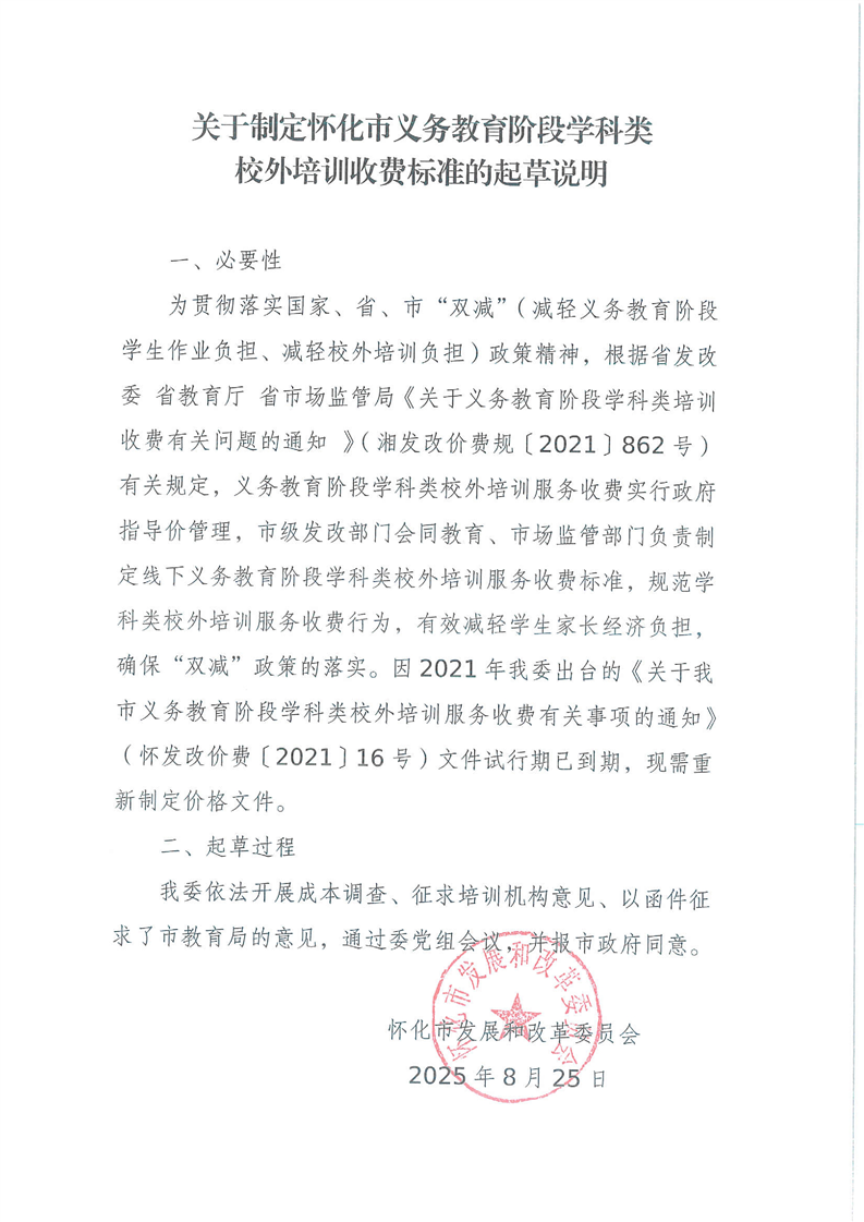 关于怀化市义务教育阶段学科类校外培训收费有关问题的通知
