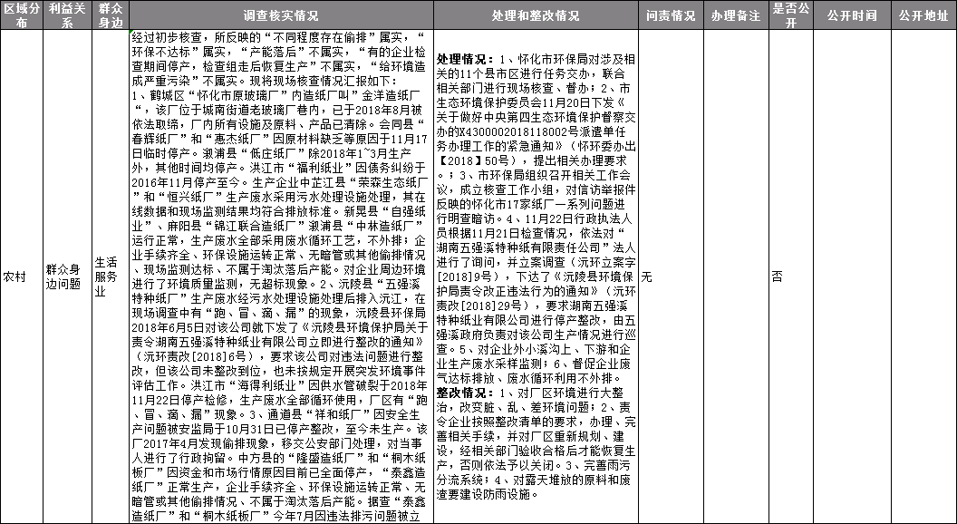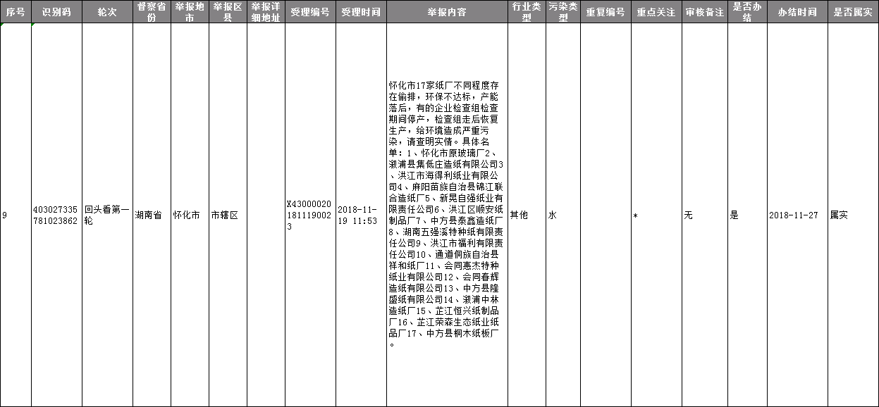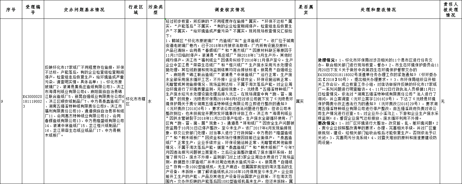 中央环保督察“回头看”:怀化市17家纸厂投诉处理结果