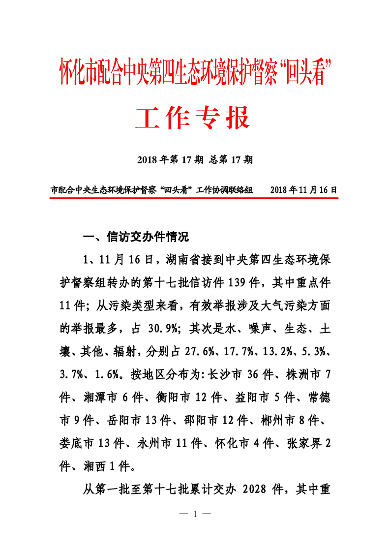第十七期 怀化市配合中央生态环境督察回头看工作专报