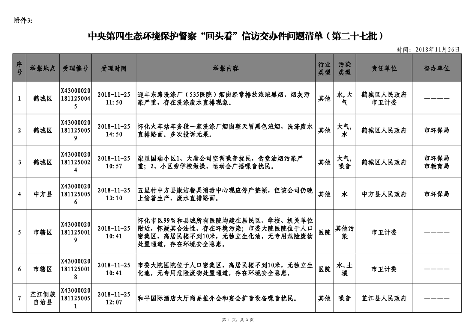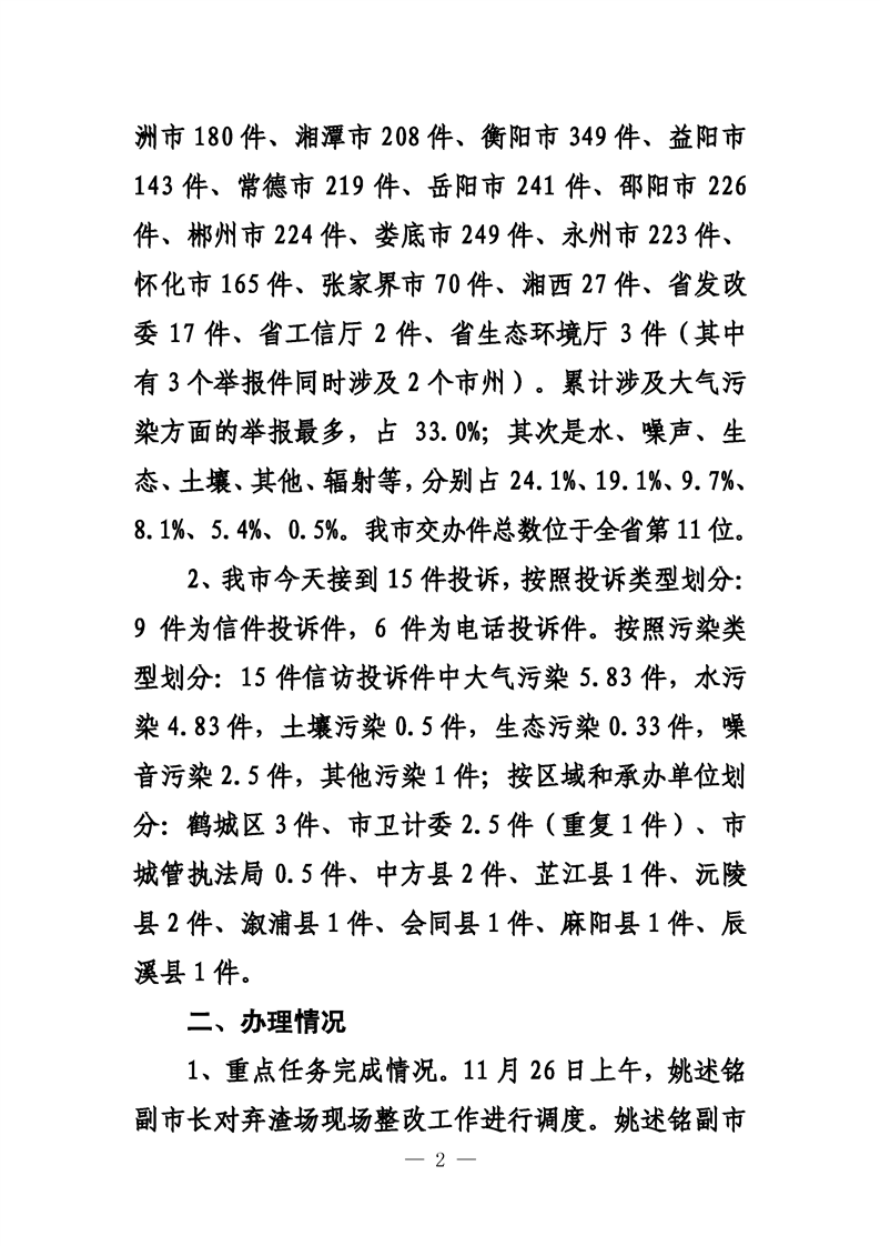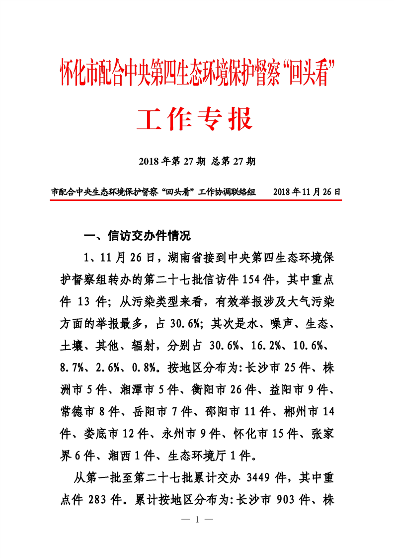 第二十七期 怀化市配合中央生态环境督察回头看工作专报