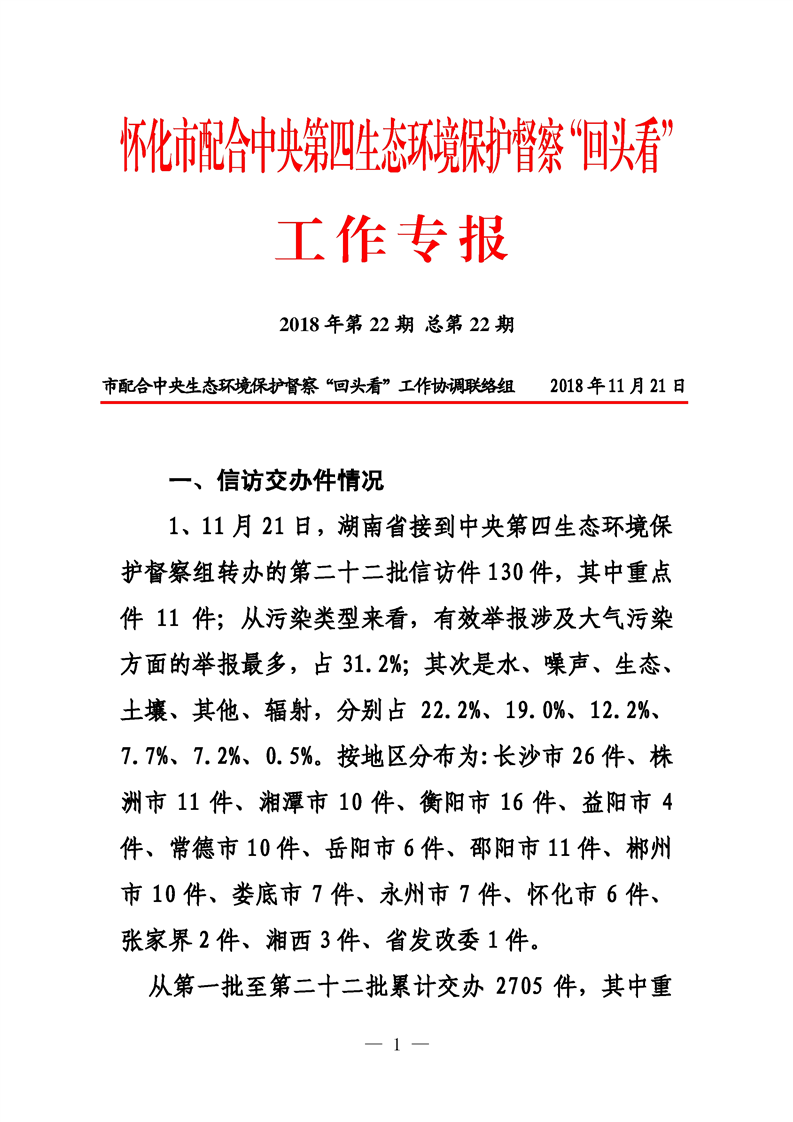 第二十二期 怀化市配合中央生态环境督察回头看工作专报