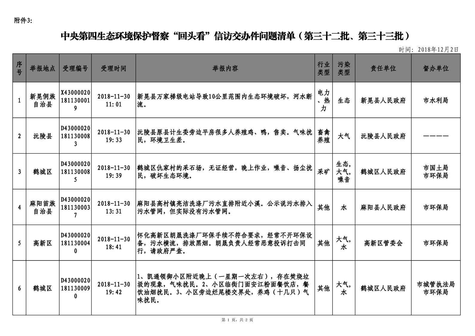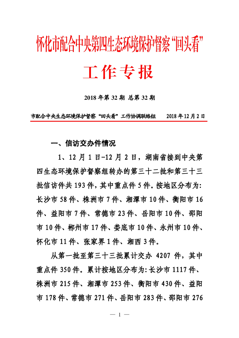 第三十二期 怀化市配合中央生态环境督察回头看工作专报
