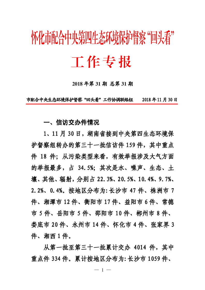 第三十一期 怀化市配合中央生态环境督察回头看工作专报