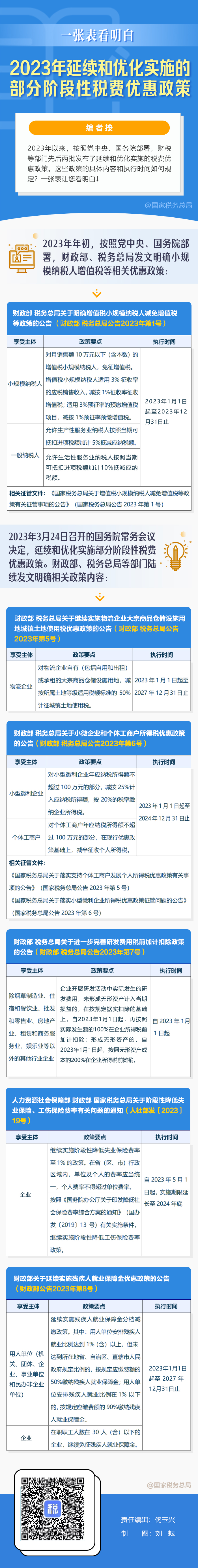 一张表看明白:2023年延续和优化实施的部分阶段性税费优惠政策