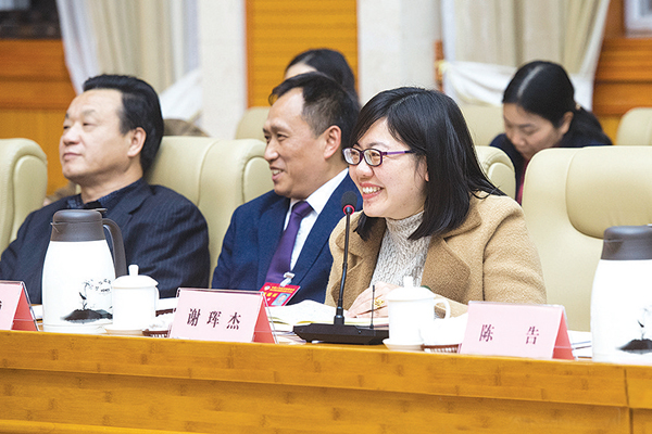 谢珲杰委员建议为中小学学生减负并促进学生教育向多方面发展。