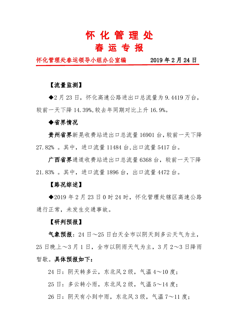 2019年怀化市高速公路春运专报(第33期)