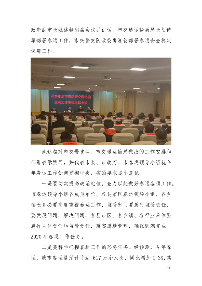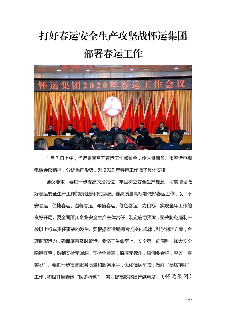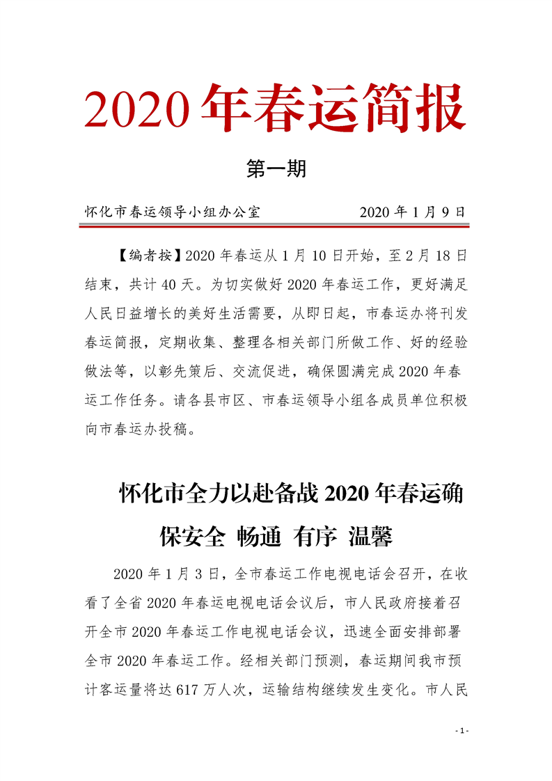怀化市2020年春运简报 第一期