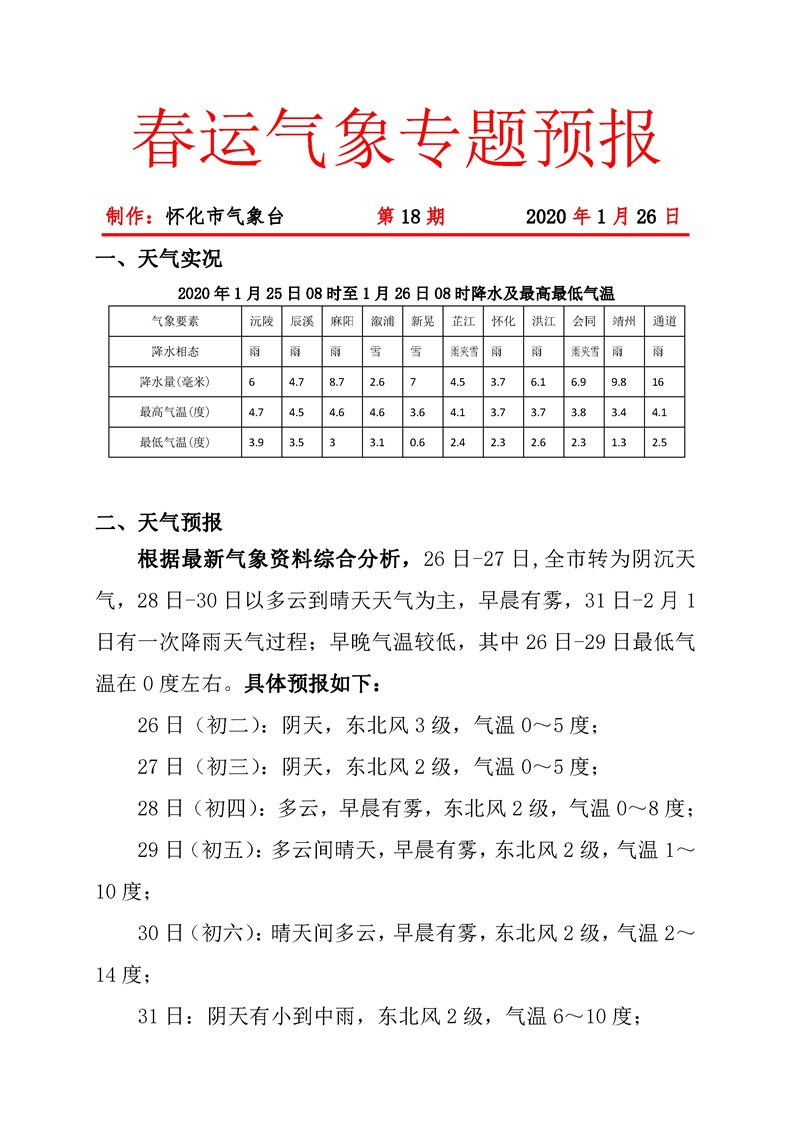 春运气象专题预报 第18期