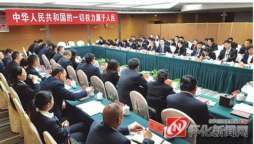 人大代表们正在审议市人大常委会及“一府两院”工作报告