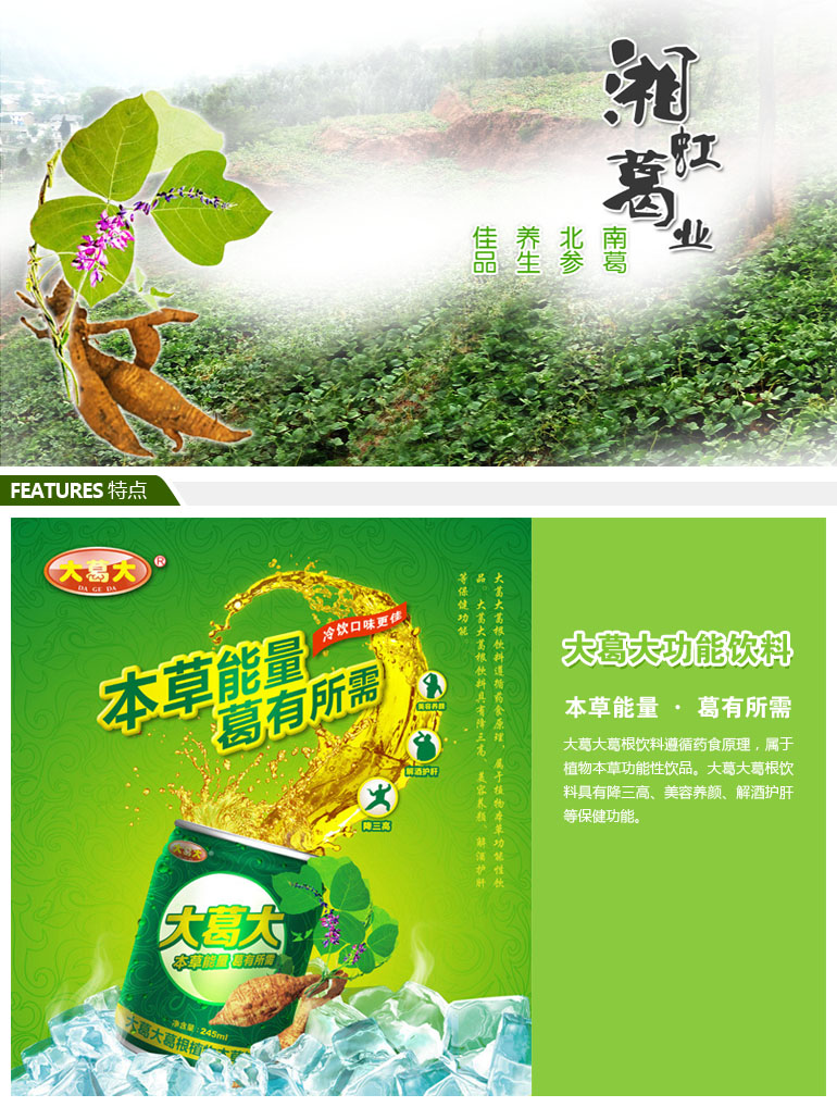 大葛大 绿色葛根茶汁凉茶饮料 罐装245ML
