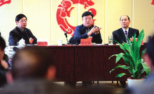 1月9日上午,市委书记张自银与鹤城代表团一起审议。 (陆晓鹏 摄)