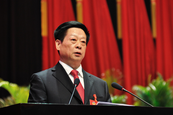 市政协主席王小华作市政协常委会工作报告。 (本报记者 史琴 摄)