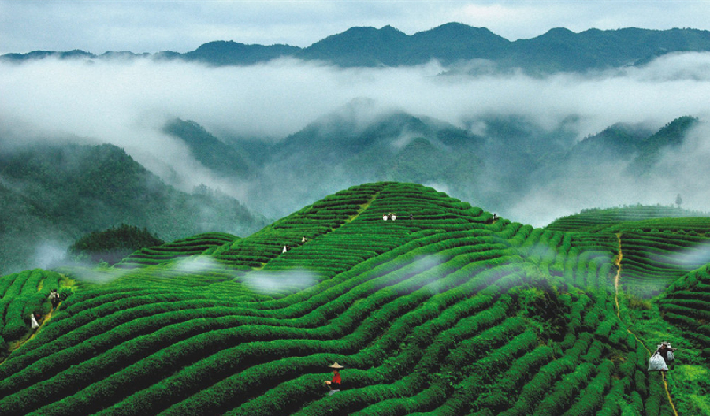 在碣滩山的山坡上,坐落着3000余亩蓊郁青翠的碣滩茶园,茶园绿染碣滩两岸,有“栽培布局夺天工,碧毯陈铺十五峰,唯有碣滩茶最好,知音海外话田中”之赞语。碣滩茶香遍全球,历史久远,在唐代已成为贡茶,历久不衰。`1972年,当时的日本首相田中角荣来华访问,曾向周恩来总理夸赞碣滩茶,并称之为“中日友好之茶”。
