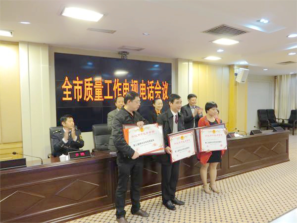 李晖市长代表市委市政府向获奖单位表示祝获并颁发证书牌匾,鼓励企业在各自的行业和领域,严格质量控制和管理,带动全市质量工作水平上台阶。