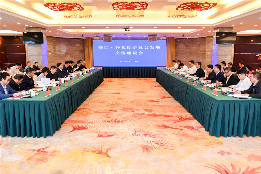 (4月22日,怀化市党政代表团赴铜仁市学习考察。图为铜仁·怀化经济社会发展交流座谈会现场。)