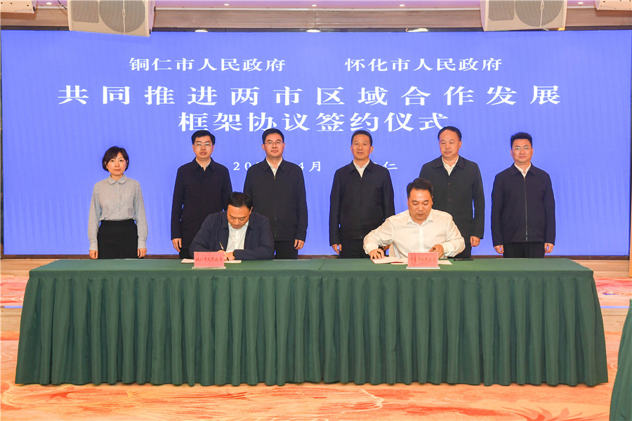 (铜仁市政府与怀化市政府签订共同推进两市区域合作发展框架协议。)