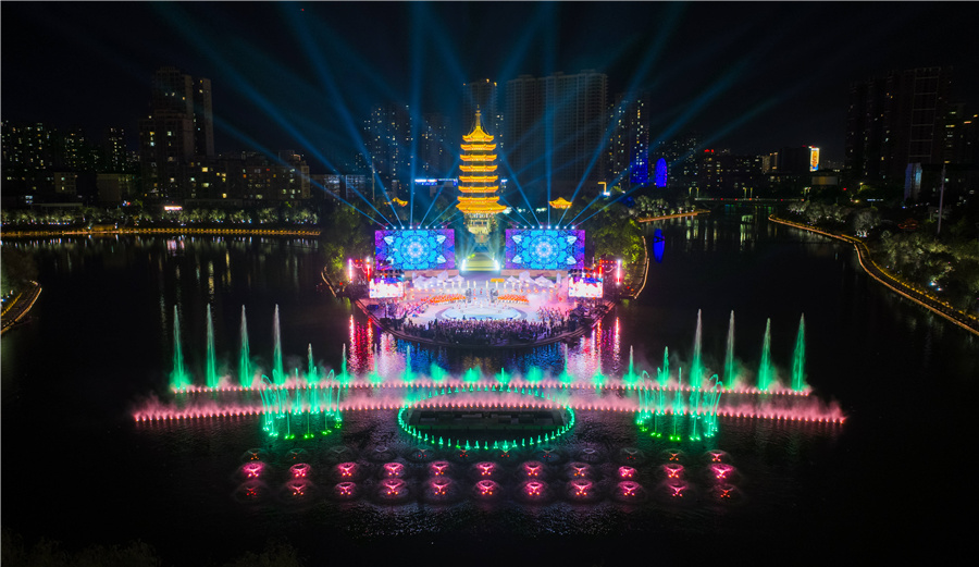 9月17日,作为第五届湖南旅游发展大会的重要配套活动,“乐动五溪·歌行千年”村歌联唱活动在怀化市鹤城区鹤鸣洲举行,13首原创歌曲精彩呈现,约400名演职人员登台表演。整场演出以“跟着村歌去旅行”为叙事主线,分为“怀化有歌”“三湘飞歌”“歌传四方”三大篇章。