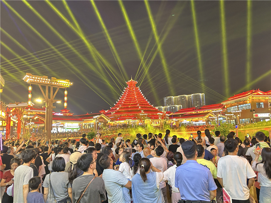 假期里,怀化“一轴四点”“三江一湾”多个特色景点成为游客打卡热门地,玩法各异的体验吸引众人驻足。榆树湾文旅商综合体从早上开始迎来游客,杂技演员为游客表演“爬杆”“蹬技”等绝活,吸引了不少游客的目光。怀化东盟集则以“异域风情+特色消费”引爆假日热潮,精彩马戏表演、篝火晚会轮番上演,还推出冬阴功汤、海南鸡饭、越南春卷等美食盛宴,市民不出国门便能感受怀化与东盟的文化交融。夜幕降临,榆树湾、天问岛、东盟集打开五光十色的彩灯,璀璨的夜景引来客流高峰,精彩的节目让游客欢呼阵阵。新获评国家4A级景区的中方县荆坪古村,青石板路上游人如织,农家乐座无虚席,“千年古驿·乐归荆坪”的魅力持续释放。