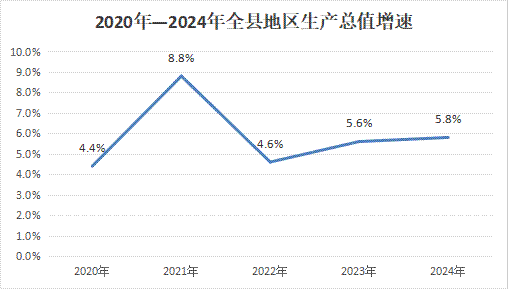 2024年,全县上下以习近平新时代中国特色社会主义思想为指导,全面贯彻党的二十大和二十届二中、三中全会精神,认真落实县委、县政府决策部署,坚持稳中求进工作总基调,全县经济运行总体平稳、稳中有进。