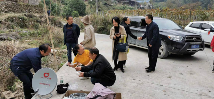 11月12日,怀化市文旅广体局戈承艳局长陪同省局领导到中方县岩头源村督查户户通进展情况和安装工作。