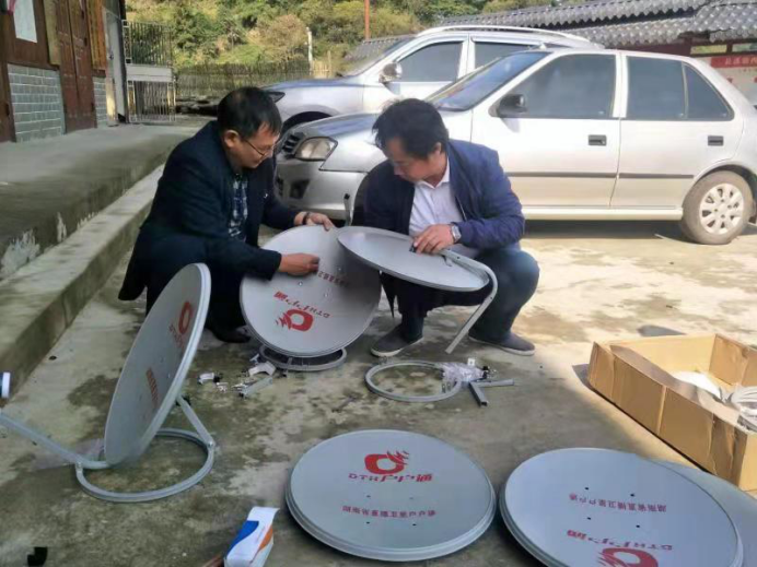 2019年11月4日通道县电视台陆友明台长带领技术人员上门安装户户通。