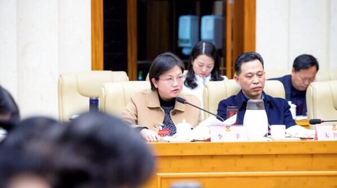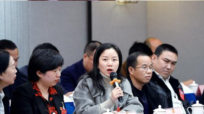 傅春燕委员建议加强特色产业小镇建设,推进 委员听取报告义乌小商品城产业链培育。