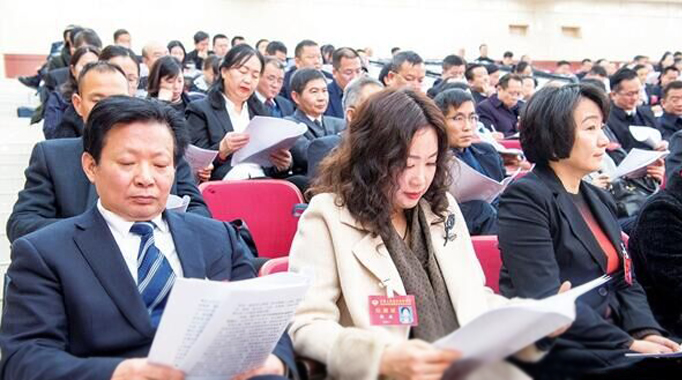 政协委员列席市五届人大四次会议,听取政府工作报告。