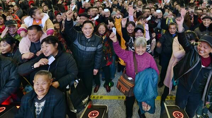 怀化安江千余民众手持车票体验乘坐高铁的激情
