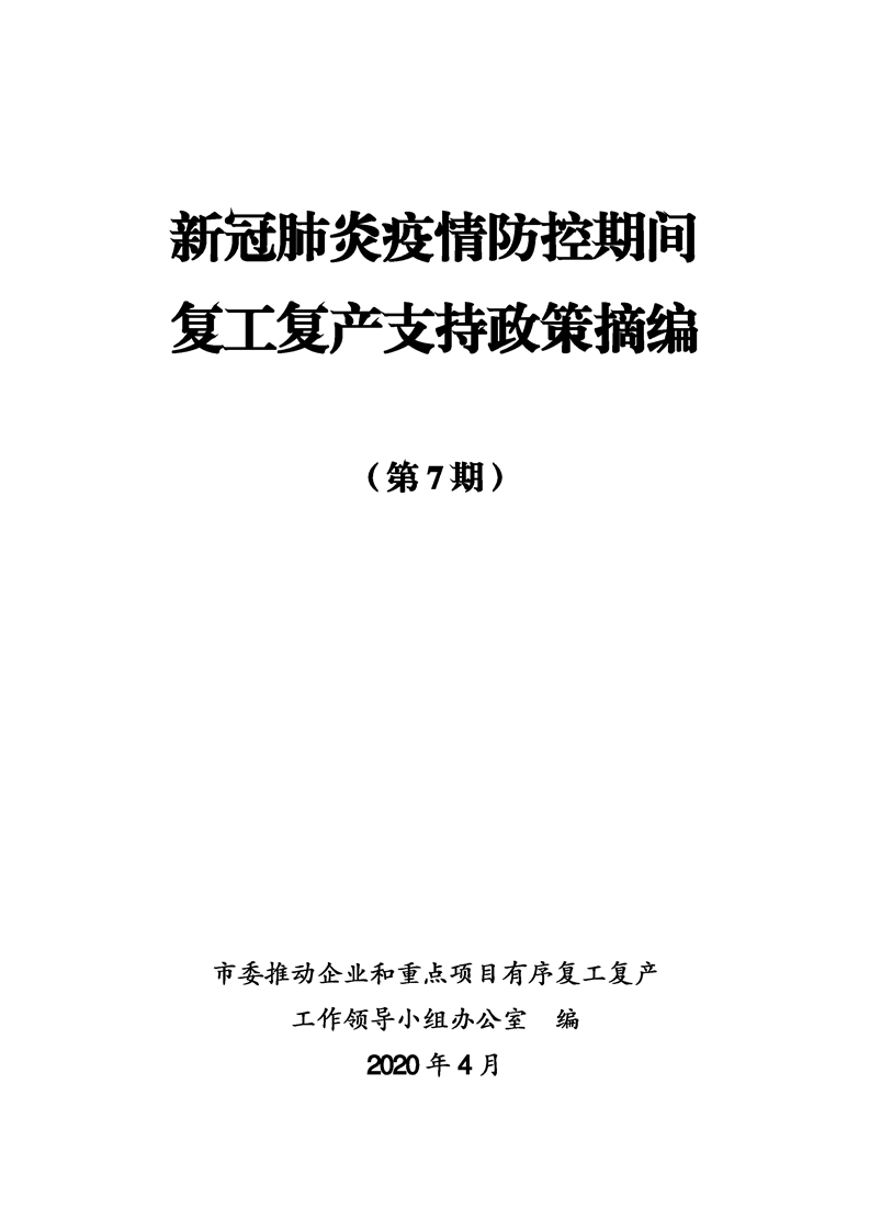 新冠肺炎疫情防控期间复工复产支持政策摘编(第7期)