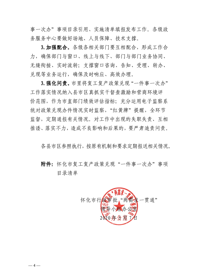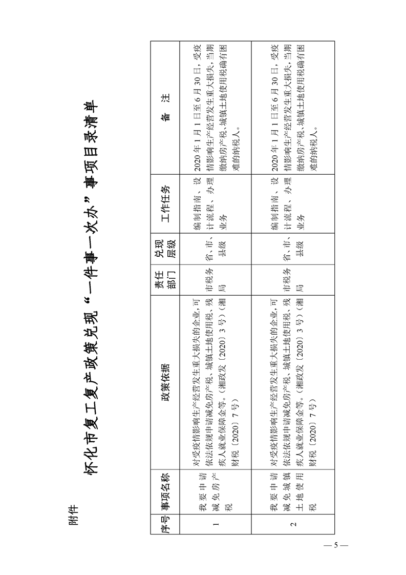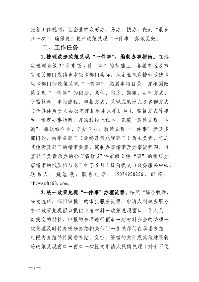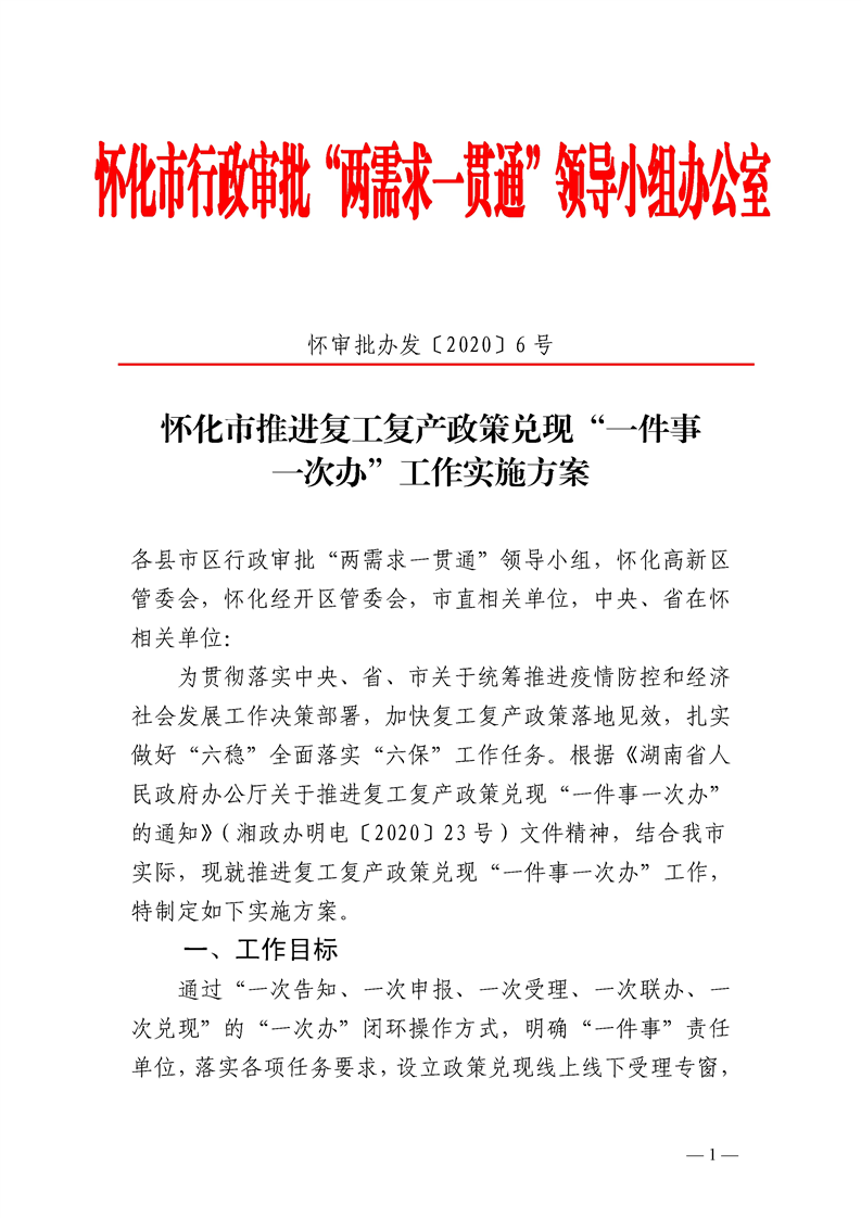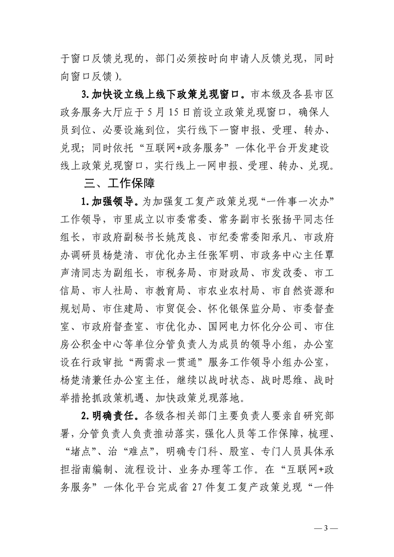 怀化市推进复工复产政策兑现“一件事一次办”工作实施方案