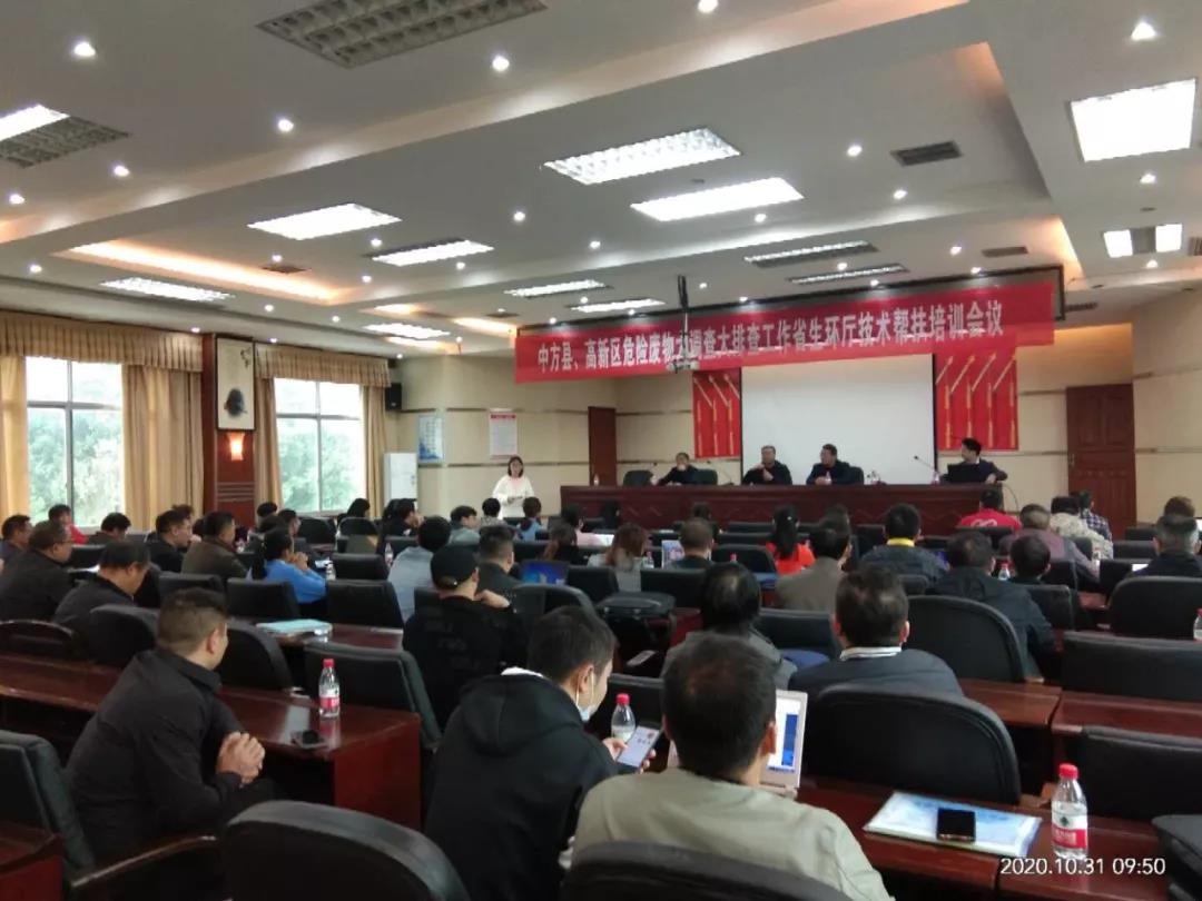 10月31日,湖南省生态环境厅专家来怀,为中方县、高新区涉危险废物的70多家企事业单位进行危险废物专项大调查大排查工作技术帮扶培训。