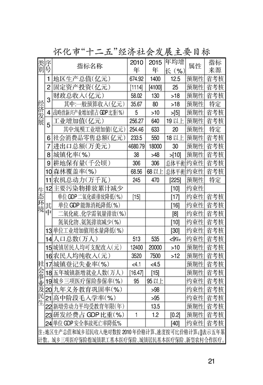 怀化市“十二五”规划纲要
