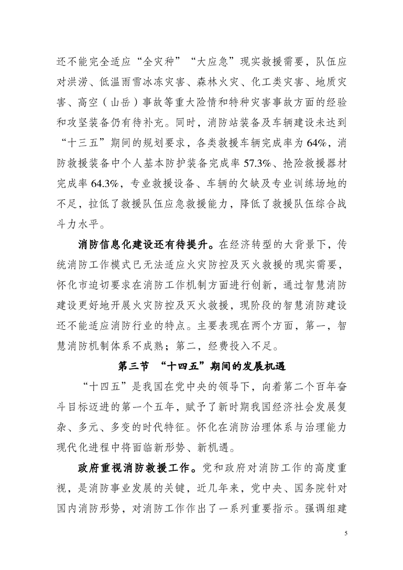 怀化市消防救援事业发展 “十四五”规划
