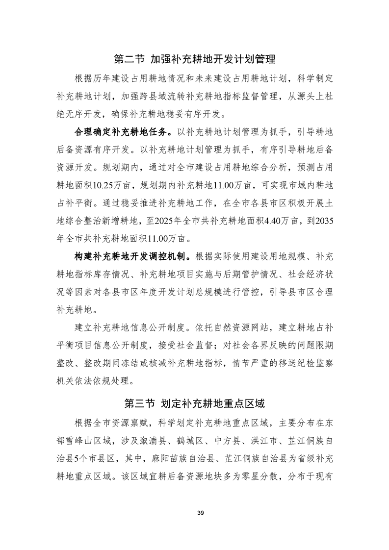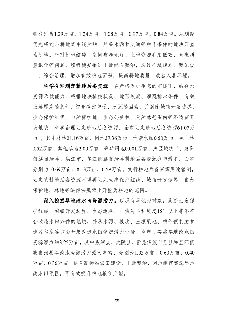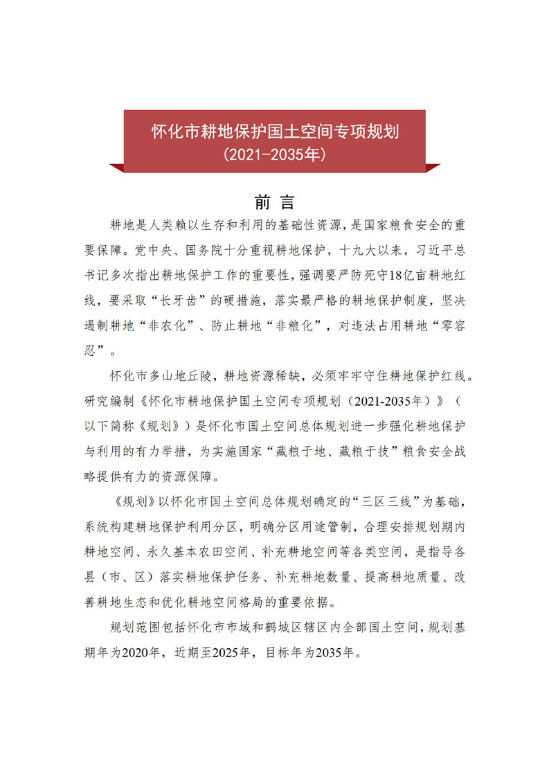 怀化市耕地保护国土空间专项规划(2021-2035年)