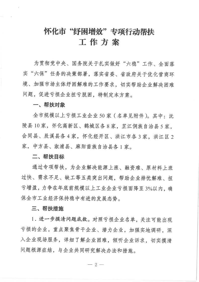 怀化市“纾困增效”专项行动帮扶工作方案(怀办发电〔2021〕70号)