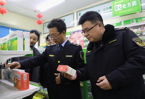 在湖南老百姓怀仁药房连锁有限公司公园路店,检查组重点对经营资质、购销渠道、储存陈列、处方药品是否凭处方销售等情况进行检查,督促企业合法合规经营。