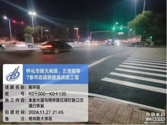 截至11月27日晚,南环路部分道路施工已全部完成并开放交通。至此,该项目涵盖城区七条道路提质改造施工已全部完成并通车。怀化主城区市政道路三期提质改造施工道路包括正清路、南环路、应民路、顺天南路、本业大道、舞水路及红星南路。项目施工里程共计13.55km、施工面积达37.57万平方米,施工过程中均已对各条道路路面病害进行处置,并重新摊铺沥青混凝土面层,对应的公交站台、道路标线及周边绿化等附属设施也一并进行提质改造。其中包括舞水路、本业大道等道路十字路口一并完成提质改造。