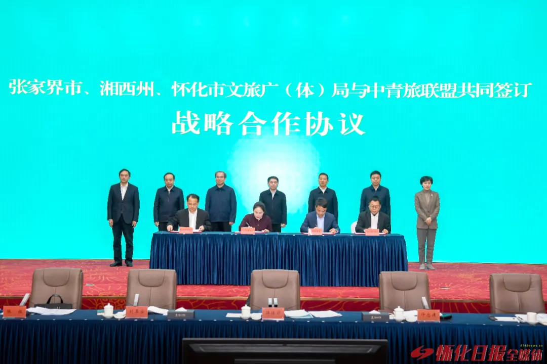 (三市州文旅广(体)局与中青旅联盟共同签订战略合作协议。以上照片均由怀化日报全媒体记者 杨智伟 摄)(湖南日报全媒体记者 周紫云 易鑫 怀化日报全媒体记者 补秀梅)