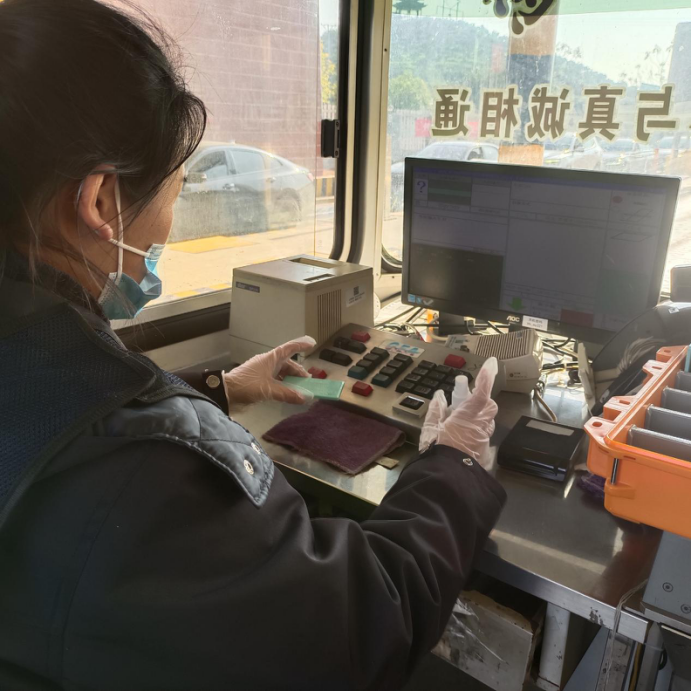春运之前,麻阳中心大站开展环境大扫除,对收费亭、防护栏、隔离墩及收费设施标牌等进行全面清洗,彻底清理杂草,冲洗车道;对收费车道及绿化带的花草树木进行了修剪和浇灌。同时,持续落实疫情防控各项防疫措施,向职工普及防疫知识,做好个人防护,坚持通风消毒工作,对CPC卡做到“一卡一消毒”,让每位司乘人员放心安全使用,营造健康的通行环境。
