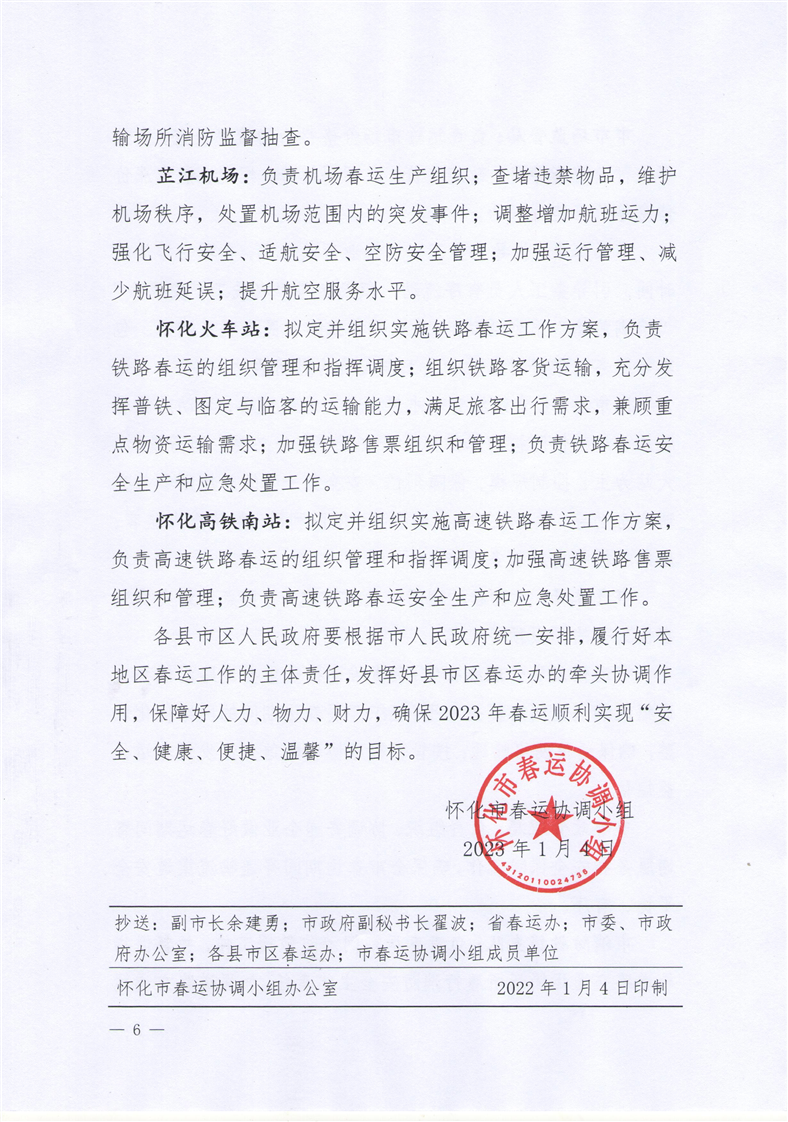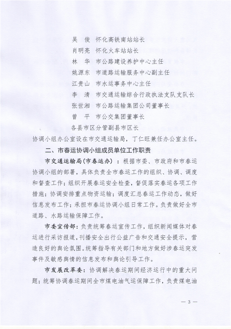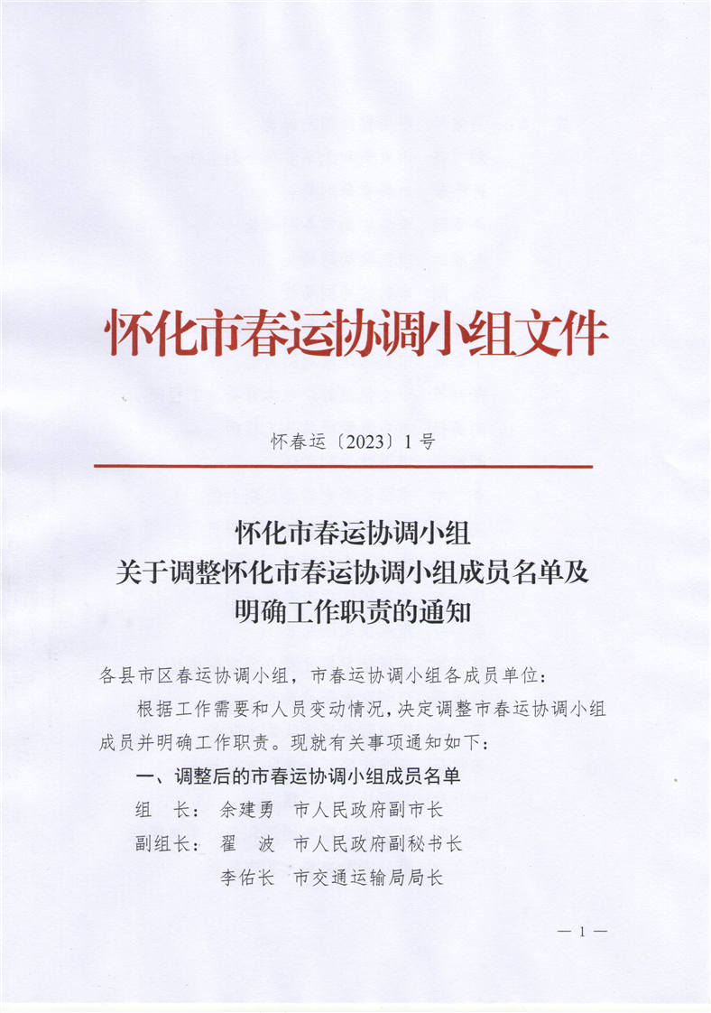 怀春运〔2023〕1号 关于调整怀化市春运协调小组成员名单及明确工作职责的通知