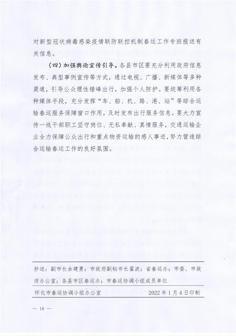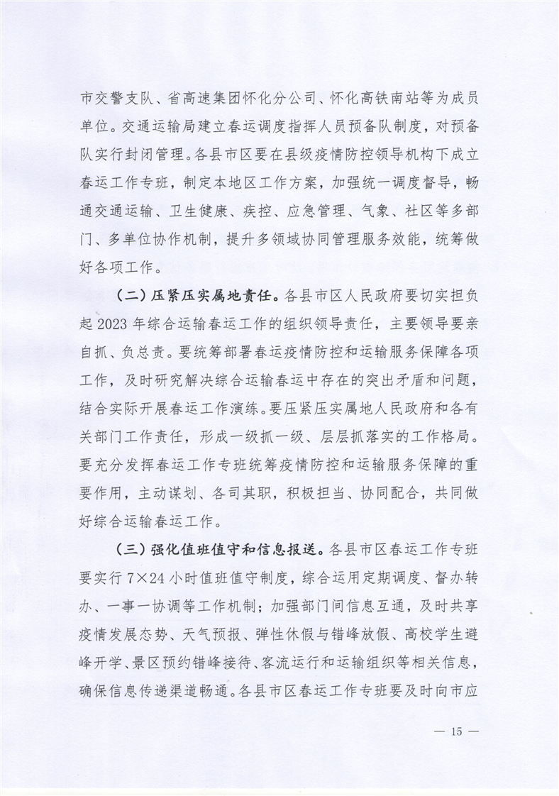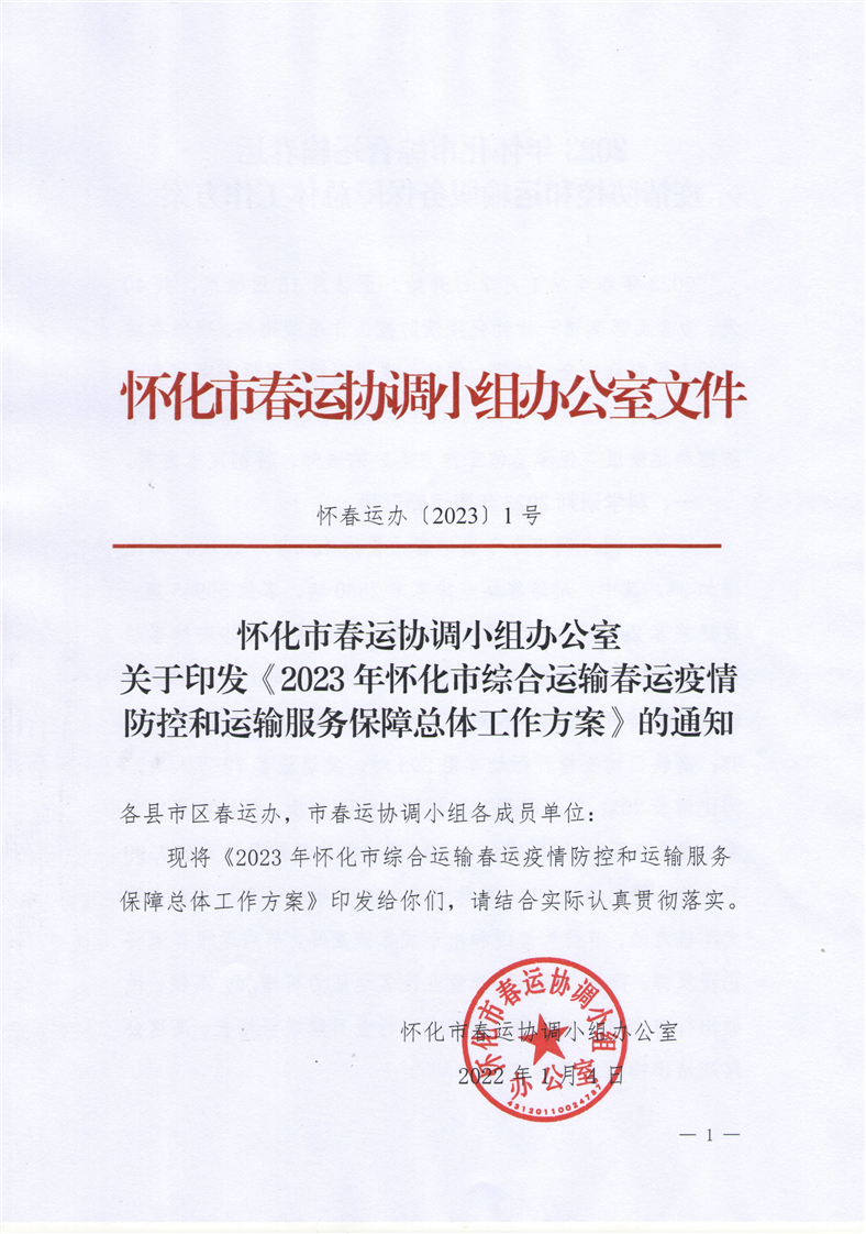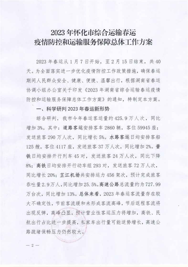 怀春运办〔2023〕1号 关于印发《2023年怀化市综合运输春运疫情防控和运输服务保障总体工作方案》的通知