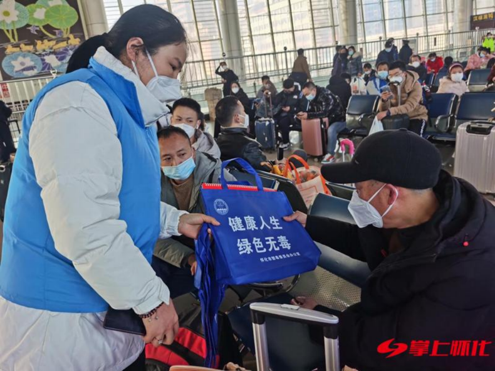 1月7日,2023年春运正式开启。怀化市禁毒办、怀化市禁毒协会紧紧抓住春运客流大、禁毒宣传覆盖面广的有利契机,联合铁路公安处在火车站内开展“平安春运 禁毒同行”活动。