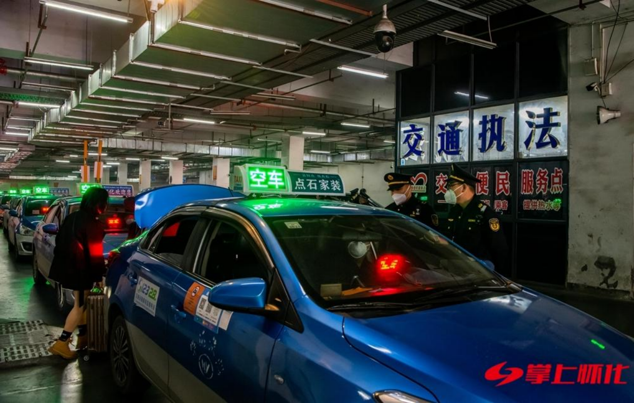 怀化市交通运输综合行政执法支队在高铁站、火车站、汽车站、高速服务区等交通枢纽,部署执法人员进行执法巡查,采取定点检查和流动巡查相结合的方式,严厉打击未取得许可擅自从事或者变相从事出租汽车经营的“黑出租车”“黑网约车”。