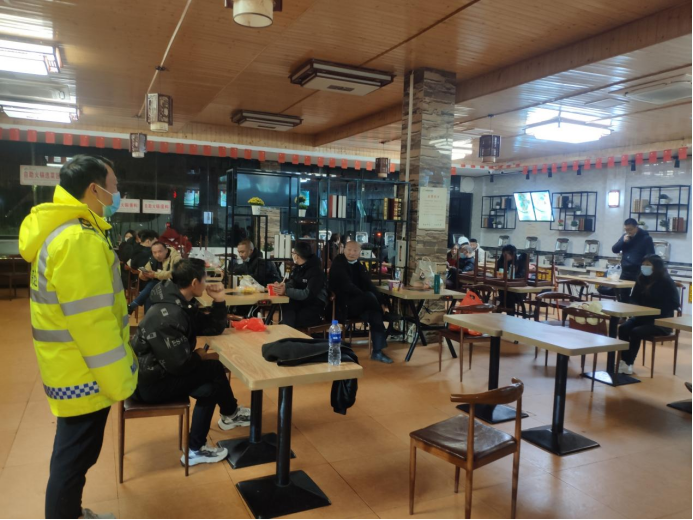 见此情况,巡查人员立即设置好警示区域,将乘客引导至安全区域,并联系车辆救援单位和转运车辆。此时的气温已经接近0℃,伴着深夜的寒风,冻得人直哆嗦。车辆由于故障无法开启空调,乘客嘴里呼呼地哈着白汽。巡查人员立即将三位老人带到巡逻车上取暖,同时安抚乘客情绪:“大家别着急,天这么冷,我们先带大家到芷江服务区避寒、休息”。