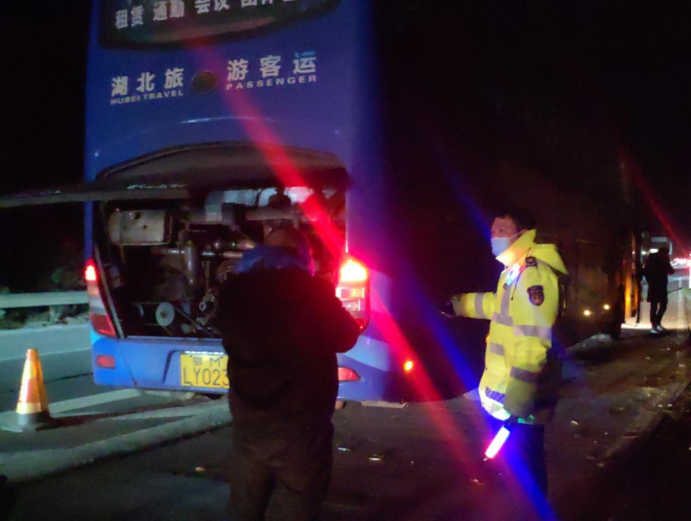 当天凌晨1时许,湖南高速集团怀化分公司芷江管理所响起了急促的电话声:“我的车坏了,车上有很多乘客,请快来帮我!”管理所巡查人员了解了车辆位置等情况后,迅速赶到现场,发现一辆鄂M牌照的大客车停在应急车道,有几位乘客站在车旁抽烟闲聊,旁边行车道上不断有车辆呼啸而过,情形十分危急。