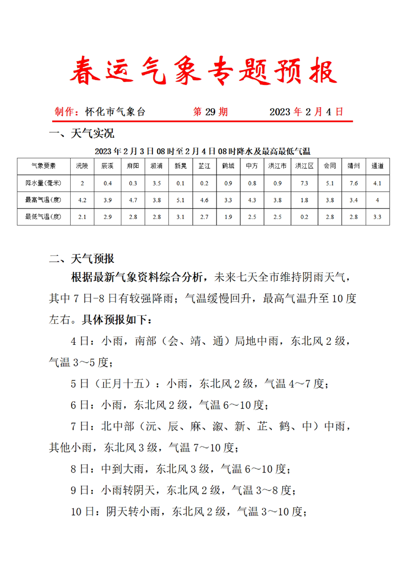 春运气象专题预报 第29期