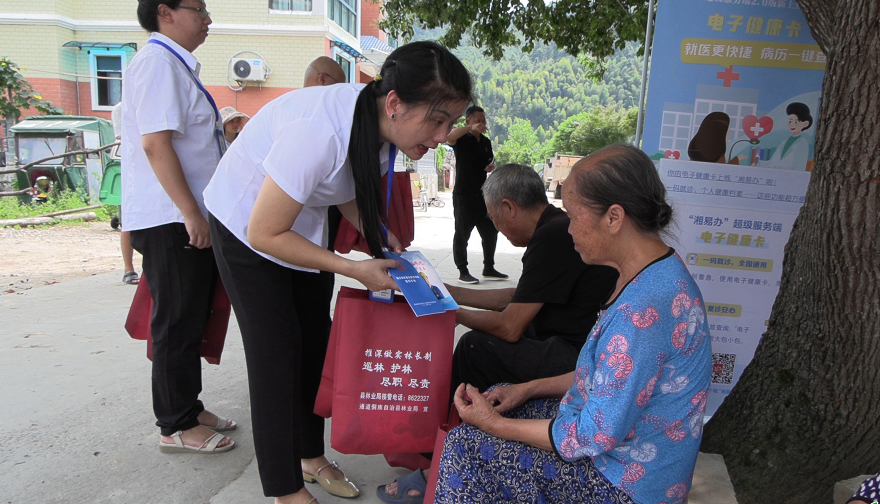 在播阳镇上寨村,通道县政务服务中心和县人社局窗口业务部门,通过发放宣传手册、摆放展板的方式,耐心为群众解读政务服务相关政策,对群众咨询的各类问题进行现场解答。此次政务下乡主要解决乡镇老人“路途远”“行动不变”等难题,多聚焦社保待遇领取资格认证、工伤保险、城乡居民基本养老保险、灵活就业养老保险待遇领取政策等老年人关心的问题,为他们集中办理相关业务,切实打通服务群众的“最后一米”。