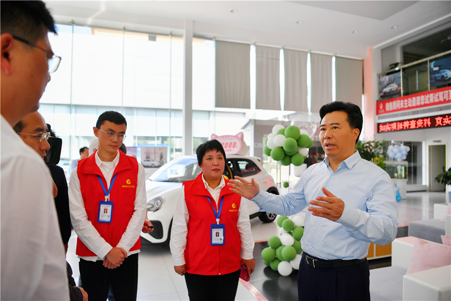 10月16日,市委副书记、市长黎春秋调研第五次全国经济普查工作开展情况。图为黎春秋在鹤城区城南街道奥林社区002普查小区怀化瑞宏汽车销售服务有限公司调研“五经普”开展情况。(怀化日报全媒体记者 张卓 摄)