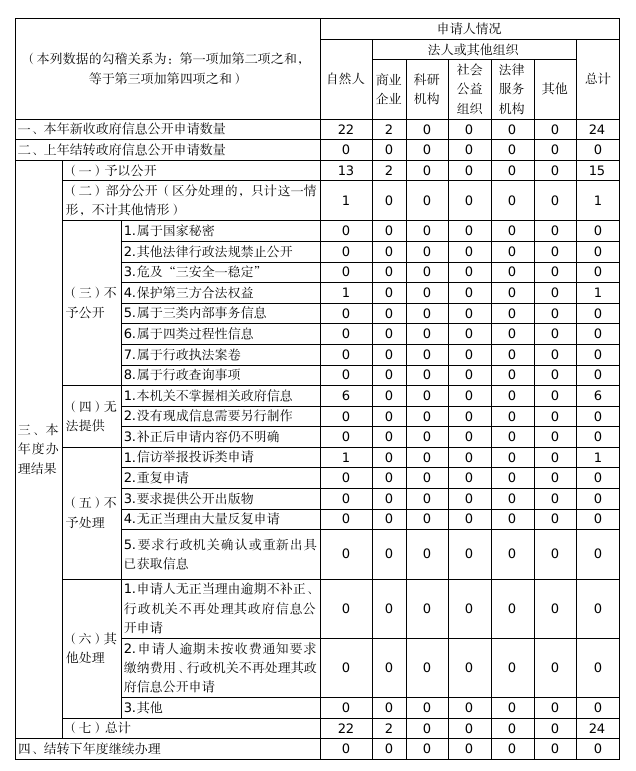 严格执行政府信息公开条例有关依申请公开的规定,依法办理政府信息公开申请件。全年收到9件线上信息公开申请、15件线下信息公开申请,均已按时办结。在行政复议、诉讼方面,也未收到有关政府信息公开的行政复议申请,也未发生关于政府信息公开的行政诉讼案件。